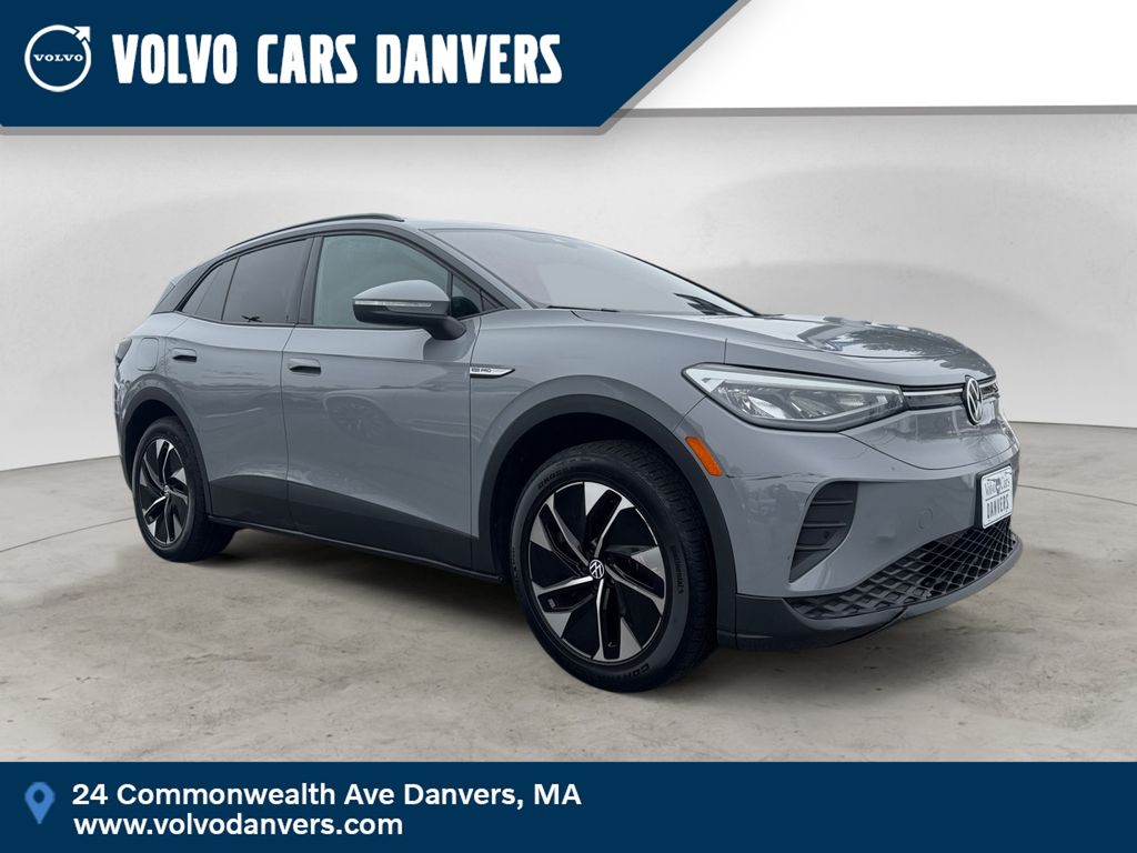Volvo Cars Danvers is proud to present you with another True Market Priced Pre-Owned Vehicle. This 2022 Volkswagen ID.4 Pro is loaded with the following Factory Options: ID.4 Protection & Convenience Package (EV Roadside Assistance Kit, First Aid Kit, Heavy Duty Trunk Liner w/VW CarGo Blocks, and Rubber Mats Kit (Set of 4)), 3.90 Axle Ratio, 4 Wheel Independent Suspension, 7 Speakers, ABS brakes, Air Conditioning, Alloy wheels, Auto High-beam Headlights, Auto-dimming Rear-View mirror, Automatic temperature control, Brake assist, Bumpers: body-color, Cloth Seating Surfaces, Delay-off headlights, Driver door bin, Driver vanity mirror, Driver's Seat Mounted Armrest, Dual front impact airbags, Dual front side impact airbags, Electronic Stability Control, Emergency communication system: VW Car-Net services (capabilities require enrollment or subscription), Exterior Parking Camera Rear, Four wheel independent suspension, Front anti-roll bar, Front Bucket Seats, Front dual zone A/C, Front reading lights, Fully automatic headlights, Heated door mirrors, Heated Front Seats, Heated front seats, Heated steering wheel, Illuminated entry, Low tire pressure warning, Navigation System, Occupant sensing airbag, Outside temperature display, Overhead airbag, Overhead console, Panic alarm, Passenger door bin, Passenger seat mounted armrest, Passenger vanity mirror, Power door mirrors, Power driver seat, Power passenger seat, Power steering, Power windows, Radio data system, Radio: Discover Pro w/10" Touchscreen Navigation, Rain sensing wipers, Rear anti-roll bar, Rear reading lights, Rear window defroster, Rear window wiper, Remote keyless entry, Roof rack: rails only, Speed control, Speed-sensing steering, Split folding rear seat, Spoiler, Steering wheel mounted audio controls, Telescoping steering wheel, Tilt steering wheel, Traction control, Trip computer, Turn signal indicator mirrors, Variably intermittent wipers, and Wheels: 19" 5-Spoke 2-Tone Machined Alloy!!